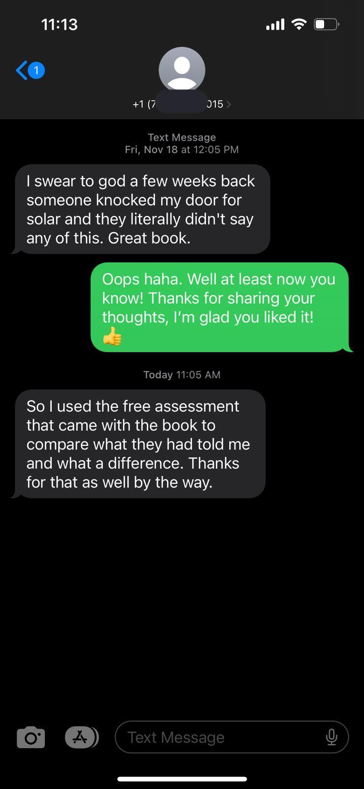 "A must read if you want to go solar. Straight to the point, highly informative, and even funny! "